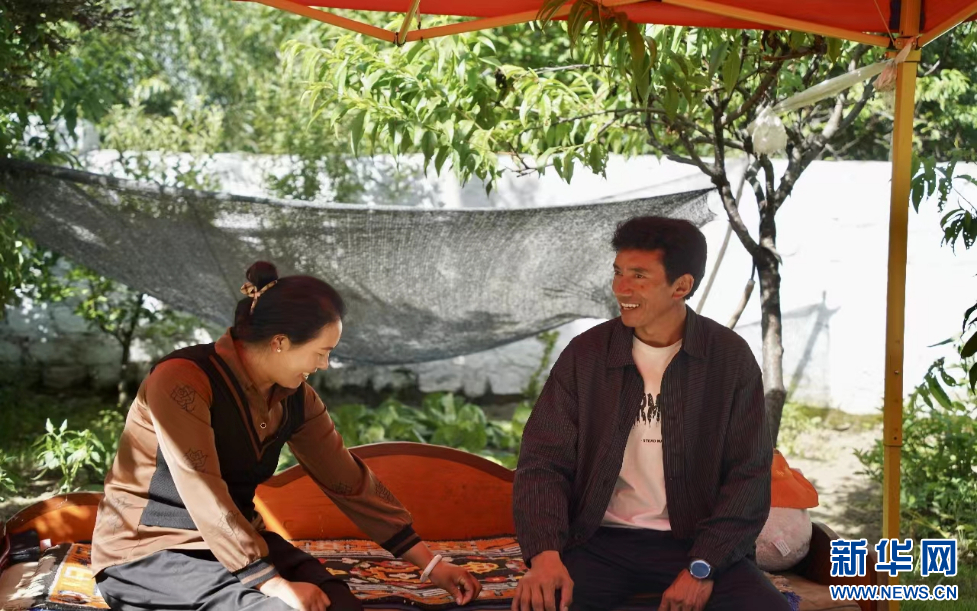 7月23日,達瓦堅參和妻子在自家院子里 。新華網發(fā) 旦增晉扎 攝