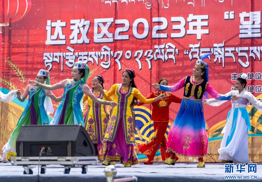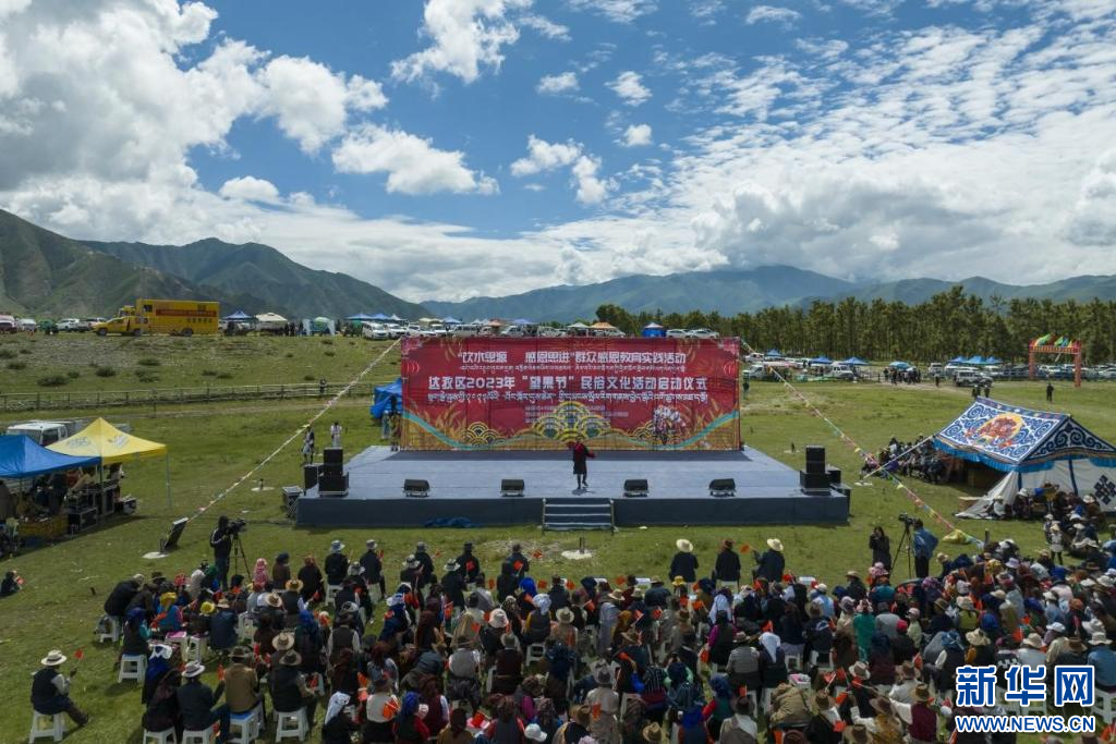 圖為達孜區(qū)2023年“望果節(jié)”民俗文化活動啟動儀式現(xiàn)場(7月28日攝)。新華網(wǎng) 旦增努布 攝