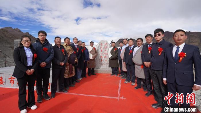 圖為那曲市委副書記、市長旦巴(圖左)和水利部水資源管理中心副處長張遠(yuǎn)東一同為“長江第一滴水”揭碑。拉巴卓瑪攝