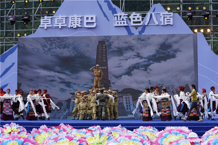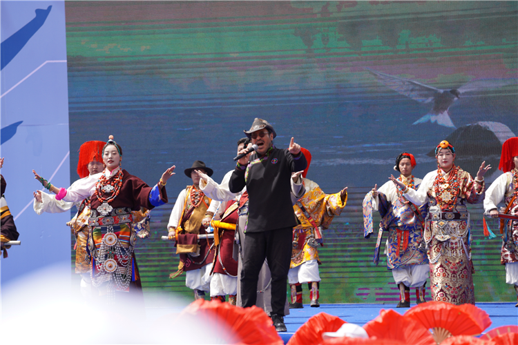 開幕式上,來自然烏鎮(zhèn)小學的200多名學生手持花傘,隨著音樂的節(jié)奏變換著各種復雜的隊型,精彩的表演令人賞心悅目;男女演員分別飾演十八軍戰(zhàn)士和小女孩,以時空對話的形式,演繹了八宿發(fā)展的歷史脈絡。開幕式還邀請了到著名藏族歌手亞東、扎西平措等前來助陣,歌聲穿透陽光,在然烏湖上空回蕩,為當地群眾帶來一場視聽盛宴。