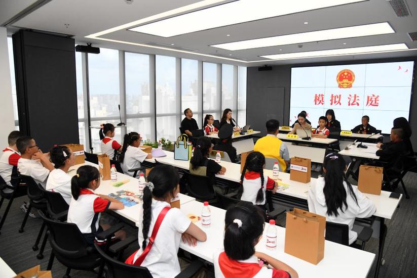 此次行程中,兩地學(xué)生沉浸式體驗(yàn)了一起“模擬法庭”庭審。他們穿上法官袍、檢察制服、律師袍、法警服,分別化身為小法官、小檢察官、小書記員、小辯護(hù)人,隨著清脆的法槌聲響起,“模擬庭審”有板有眼地依序進(jìn)行。三年級西藏學(xué)生旦增拉吉說,看完庭審,我懂得了學(xué)習(xí)法律知識的重要性,感受到司法的神圣和威嚴(yán)。
