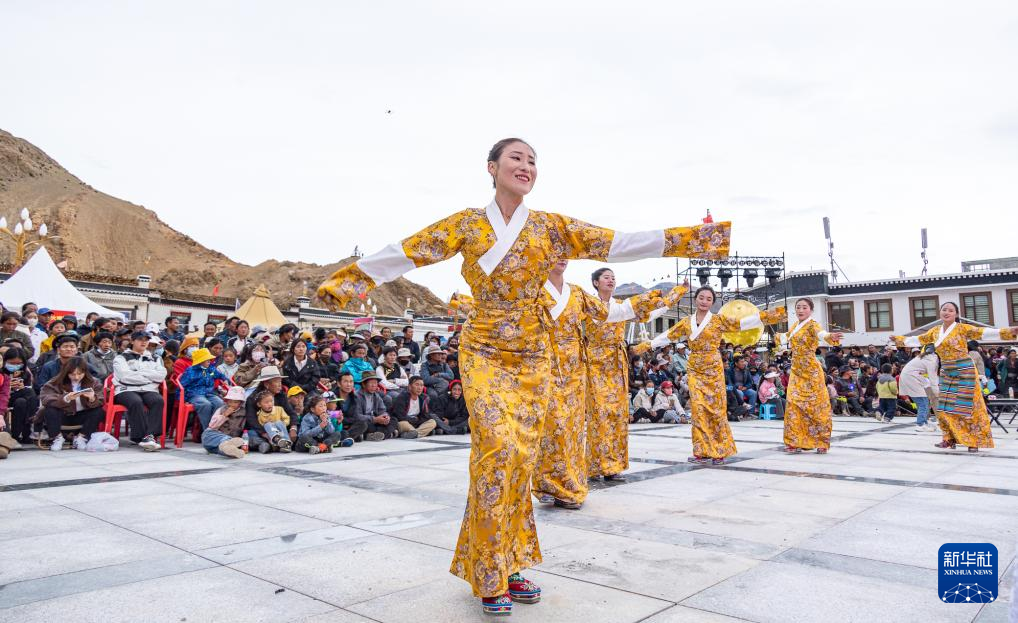 演員在表演定日洛諧舞蹈。新華社記者 丁增尼達 攝