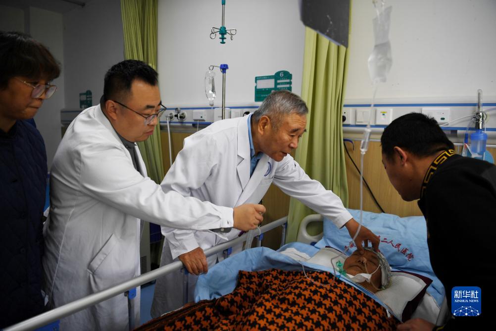 8月10日,中國科學院院士、首都醫(yī)科大學附屬北京天壇醫(yī)院神經外科學中心主任醫(yī)師趙繼宗(后右一)在西藏自治區(qū)第二人民醫(yī)院為患者會診。新華社記者 張汝鋒 攝