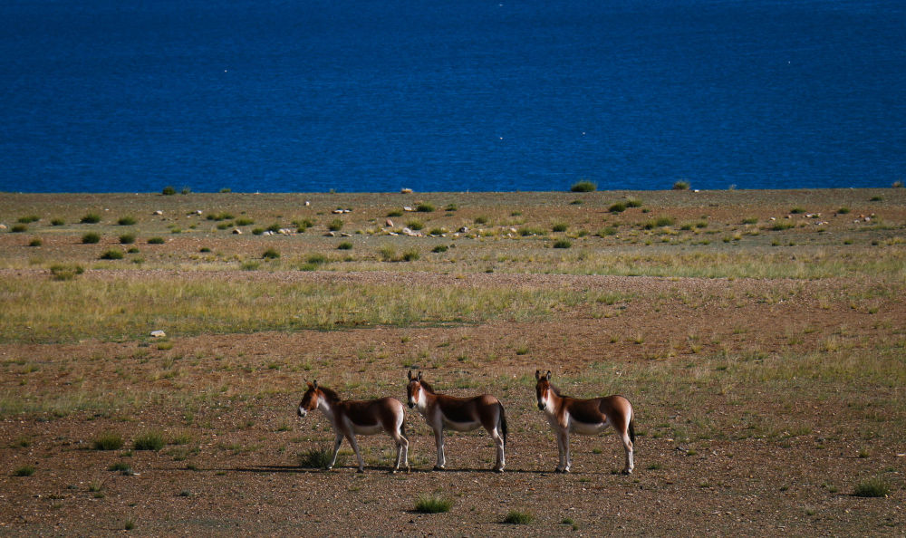 拉昂錯位于西藏阿里地區(qū)普蘭縣東北部的霍爾鄉(xiāng),湖面海拔4573米。拉昂錯與圣湖瑪旁雍錯相鄰,僅以一條公路相隔,遠處岡底斯山脈的主峰岡仁波齊巍峨聳立。藏野驢是國家一級保護動物,青藏高原特有物種,近年來隨著西藏生態(tài)保護力度不斷增大,藏野驢數(shù)量由原來的5萬只左右增加至現(xiàn)在的約9萬只。