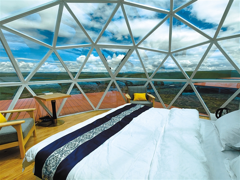 圖為夯錯(cuò)濕地暗夜星空景區(qū)戶外星空房一角。 記者 趙書(shū)彬 萬(wàn)靖 攝