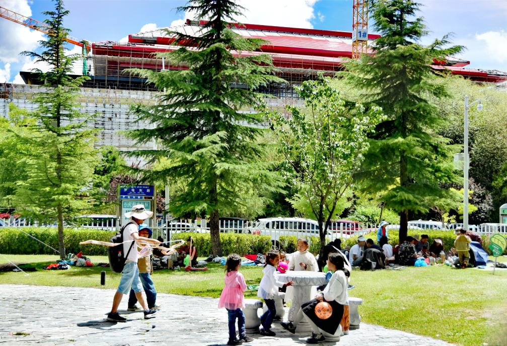 雪頓節(jié)期間,西藏各個景點游人如織、熱鬧非常。拉薩市民準備好毯子和小吃,到羅布林卡“過林卡”。園林內(nèi),既有小橋流水,也有恢弘建筑,雪頓節(jié)期間更有持續(xù)不斷的藏戲表演。