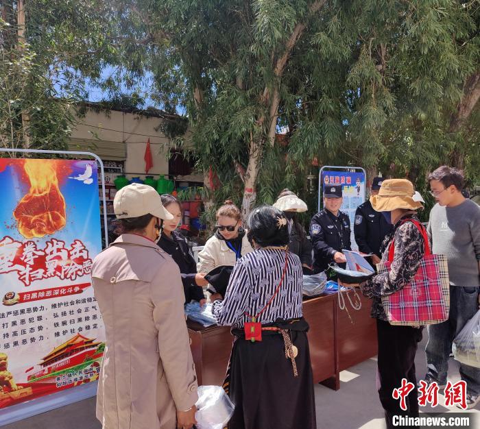 圖為普法宣傳活動(dòng)現(xiàn)場(chǎng),民警向民眾講解掃黑除惡相關(guān)知識(shí)。黃創(chuàng)偉 攝