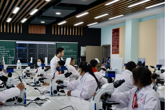 VR實訓(xùn)室、校園電視臺、專業(yè)實驗室、模擬創(chuàng)業(yè)實訓(xùn)基地、綜合實訓(xùn)樓……在那曲市職業(yè)技術(shù)學(xué)校中,產(chǎn)教相融的現(xiàn)代化基礎(chǔ)設(shè)施隨處可見。