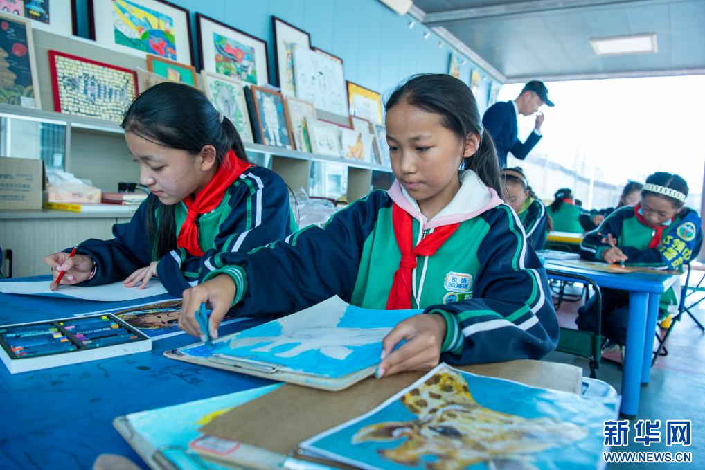 圖為那曲市第二小學(xué)學(xué)生在學(xué)習(xí)繪畫(9月5日攝)。新華網(wǎng) 旦增努布 攝