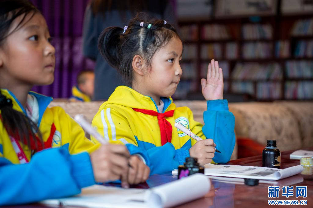 圖為索縣第一小學(xué)學(xué)生在學(xué)習(xí)藏文書法(9月7日攝)。新華網(wǎng) 旦增努布 攝