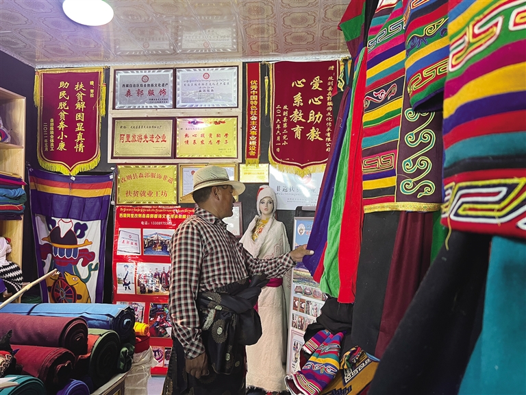 努拉今年66歲,自他曾祖父起,家人就開始從事“森郭服飾”制作,并將這項(xiàng)非遺技藝一代一代傳承了下來。努拉告訴記者:“從父親那一輩開始,由于外來服飾的流入,藏民族傳統(tǒng)服飾的發(fā)展就不如從前了,這對‘森郭服飾’的傳承也有很大的影響?!?/p>