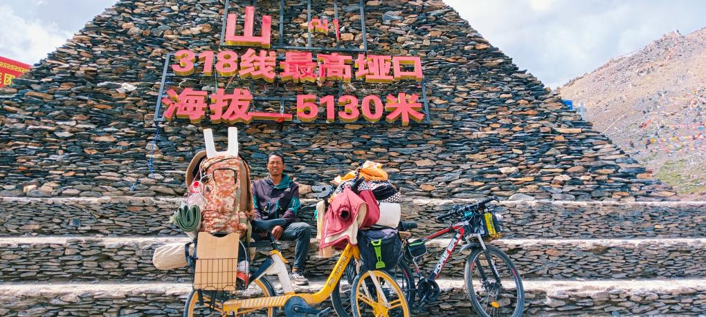 王賢日騎車跨過位于西藏左貢縣境內(nèi)的東達山埡口