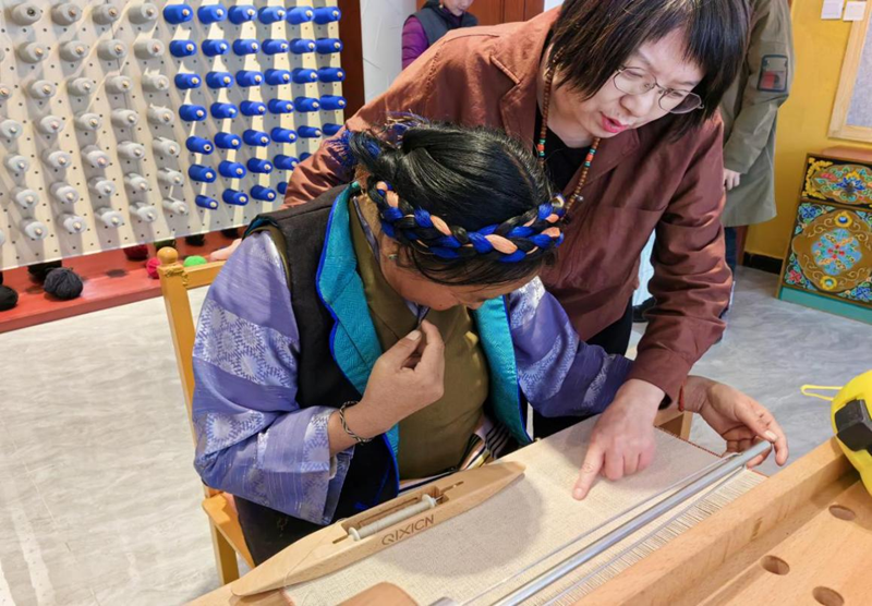 幾個月來,通過郭秀玲創(chuàng)建的上海工匠沙涓援藏氆氌工作室,帶動了本地藏族“阿佳”加入氆氌手工坊,包括江孜縣索蓋村次仁片多在內的殘障婦女在家實現(xiàn)就業(yè),并傳授她們最新織機技藝。西藏日喀則江孜縣商務局黨組書記、局長央吉介紹說,郭秀玲還將在江孜建立專業(yè)牧場,從羊絨到紡織一條龍,讓產(chǎn)業(yè)鏈得到延長。預計一年后,可以帶動江孜氆氌女匠人每人每年增收5萬元。