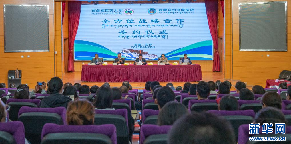 西藏藏醫(yī)藥大學與西藏自治區(qū)藏醫(yī)院全方位戰(zhàn)略合作簽約儀式現場(9月28日攝)。新華社發(fā)(丁增尼達攝)