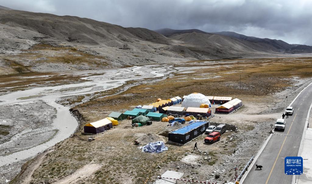 這是卓奧友峰登山大本營,科考隊(duì)員在這里開展部分急進(jìn)高原人群健康研究(10月1日攝,無人機(jī)照片)。新華社記者 晉美多吉 攝