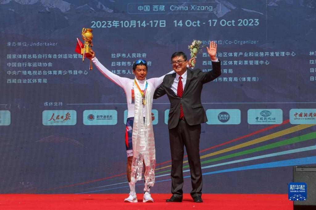 10月17日,參賽選手沖過(guò)終點(diǎn)。新華社記者 普布次仁 攝