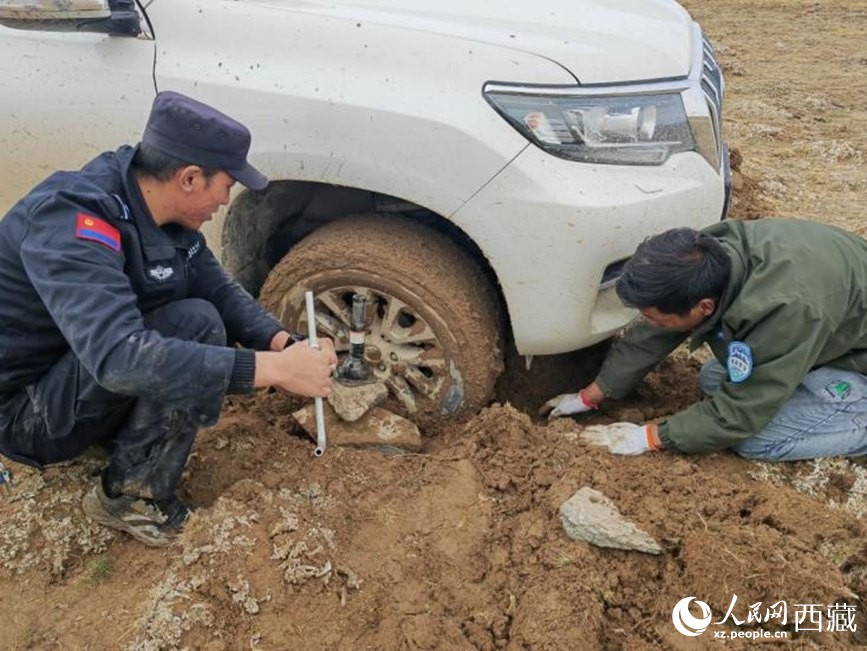 最后一次陷車是在晚上9點(diǎn)多,哪怕是夏季,這里氣溫也已降到零下十幾度。風(fēng)雪不斷襲來(lái),他們趴在地上甚至用手刨。時(shí)間一分一秒過(guò)去,大家都沒力氣說(shuō)話了。