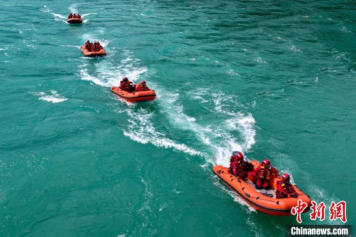 圖為林芝森林消防指戰(zhàn)員進(jìn)行舟艇一字型前進(jìn)編隊訓(xùn)練。楊永龍 攝