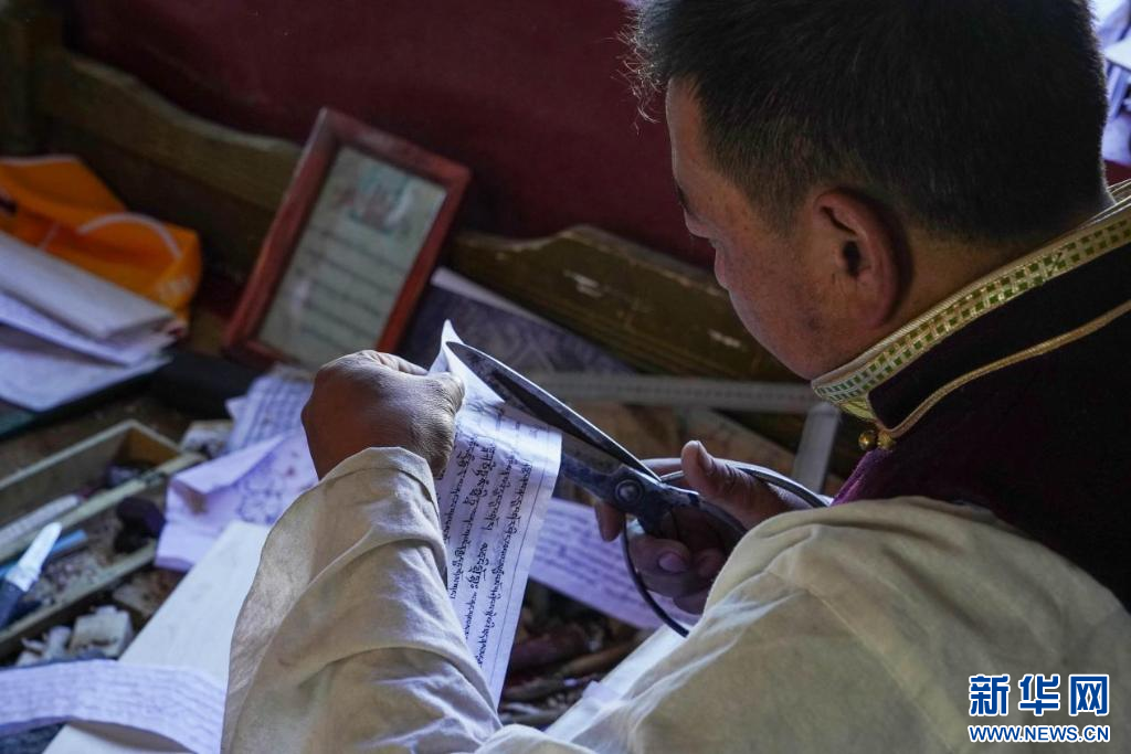 圖為嘎瑪曲扎正在為雕刻做準(zhǔn)備(10月21日攝)。新華網(wǎng)發(fā) 司秦菱 攝