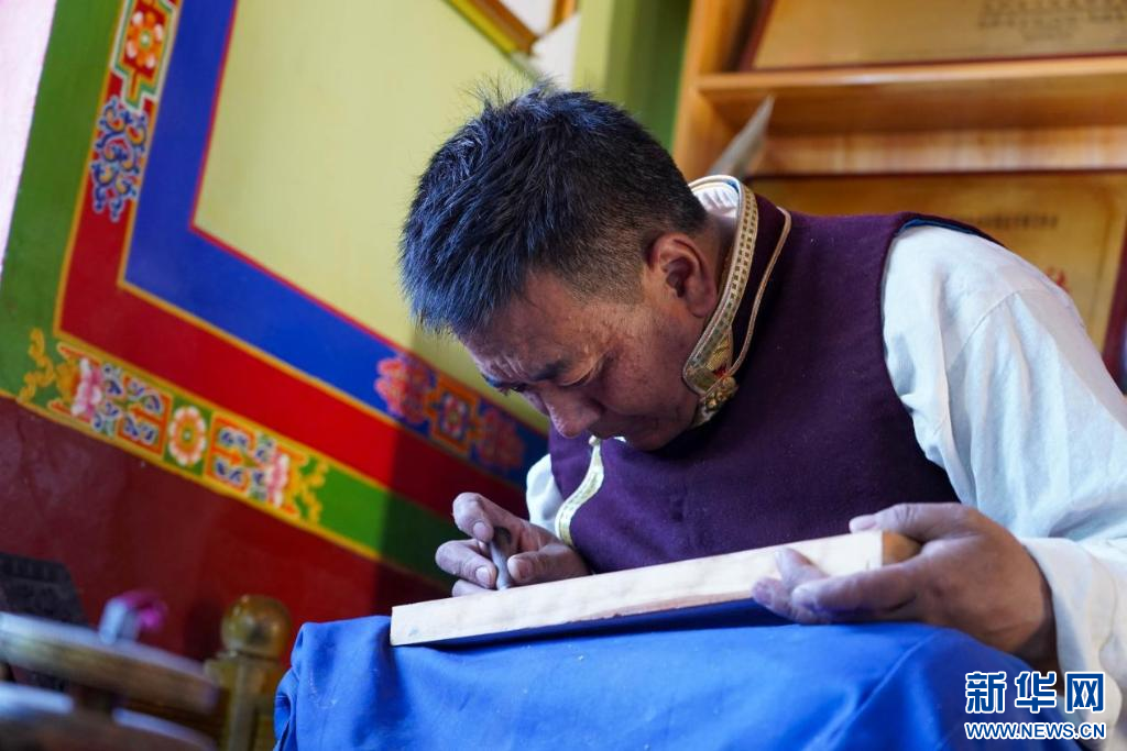 圖為正在雕刻的嘎瑪曲扎(10月21日攝)。新華網(wǎng)發(fā) 司秦菱 攝