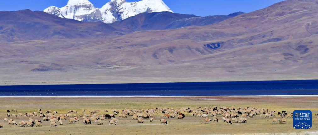 哲古湖畔草場(chǎng)上的羊群(10月25日攝)。新華社記者 張汝鋒 攝