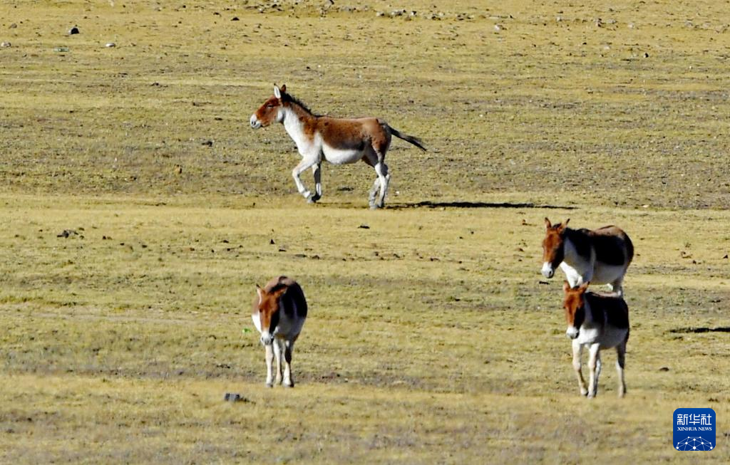 哲古湖畔草場(chǎng)上的藏野驢(10月25日攝)。新華社記者 張汝鋒 攝