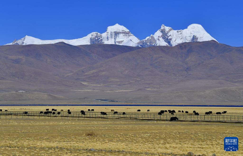 哲古景區(qū)雪山腳下的天然牧場(chǎng)(10月25日攝)。新華社記者 張汝鋒 攝