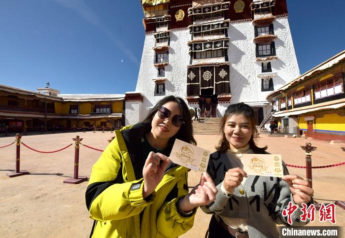 11月1日,西藏拉薩,來自四川瀘州的游客展示布達(dá)拉宮參觀券。中新社記者 李林 攝