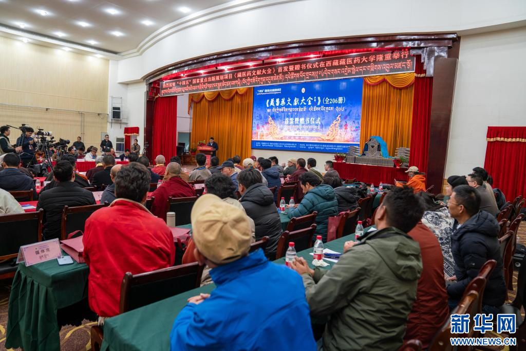 11月16日,“十四五”國(guó)家重點(diǎn)出版規(guī)劃項(xiàng)目《藏醫(yī)藥文獻(xiàn)大全》首發(fā)暨贈(zèng)書(shū)儀式現(xiàn)場(chǎng)。新華社記者 旦增尼瑪曲珠 攝