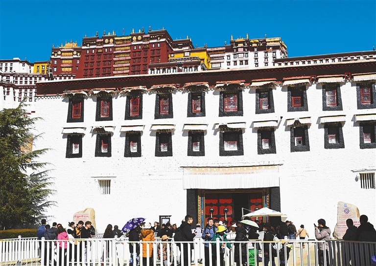 2023年11月1日至2024年3月15日為“冬游西藏”市場(chǎng)促進(jìn)活動(dòng)時(shí)間,在此期間,除寺廟景區(qū)外,西藏自治區(qū)所有A級(jí)景區(qū)免費(fèi)游覽?;顒?dòng)啟動(dòng)以來(lái),布達(dá)拉宮作為游客來(lái)藏旅游的首選之地,日均接待量達(dá)4000余人次?!?/p>
