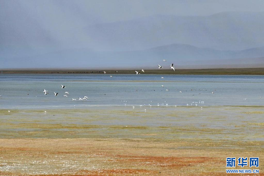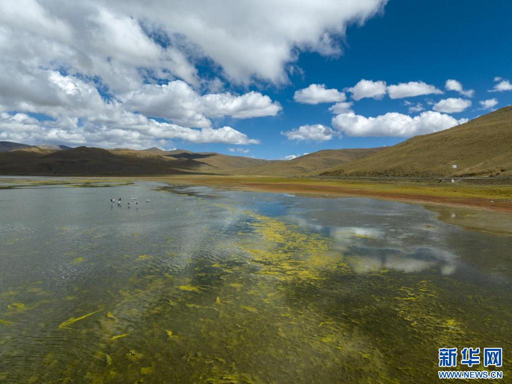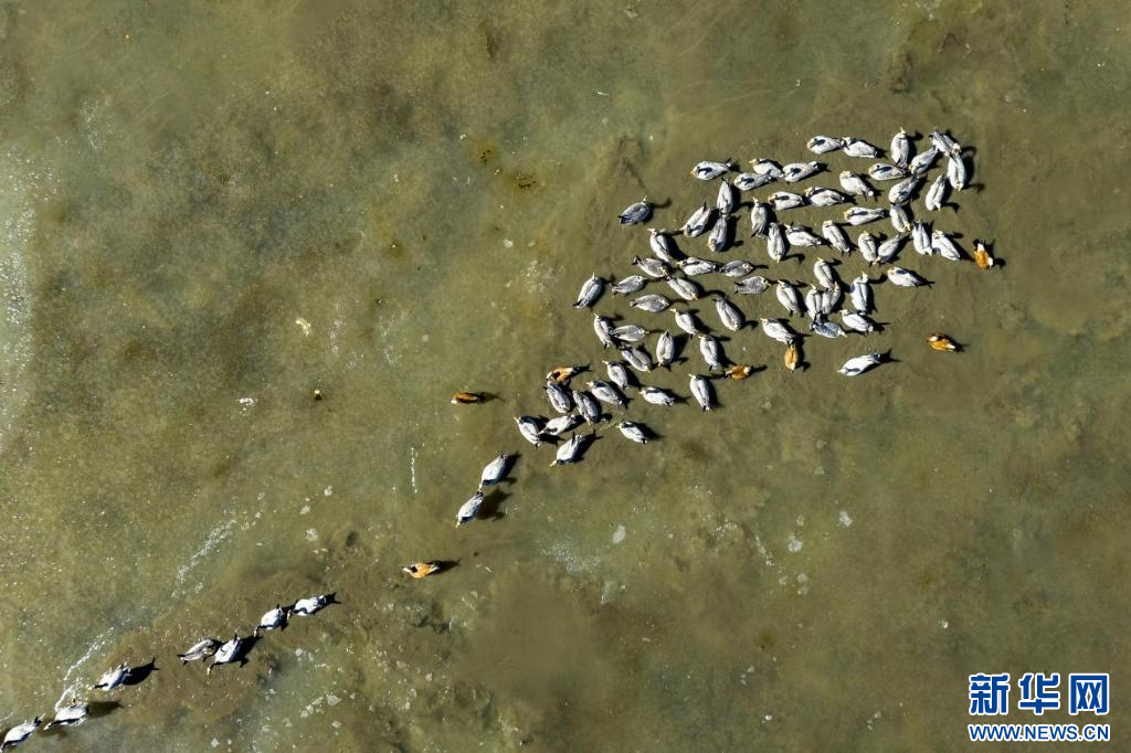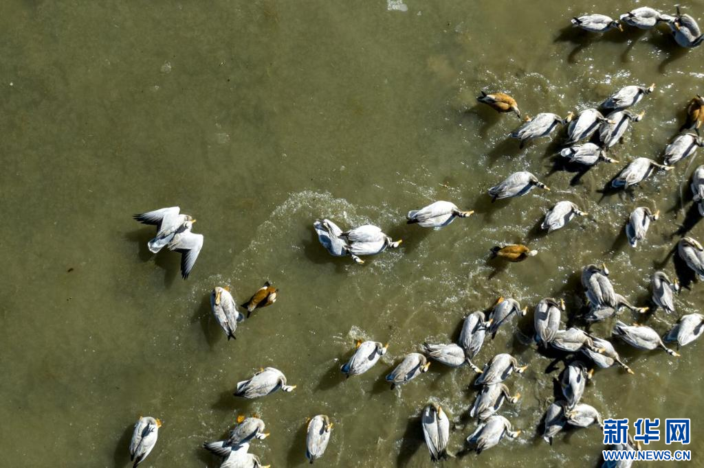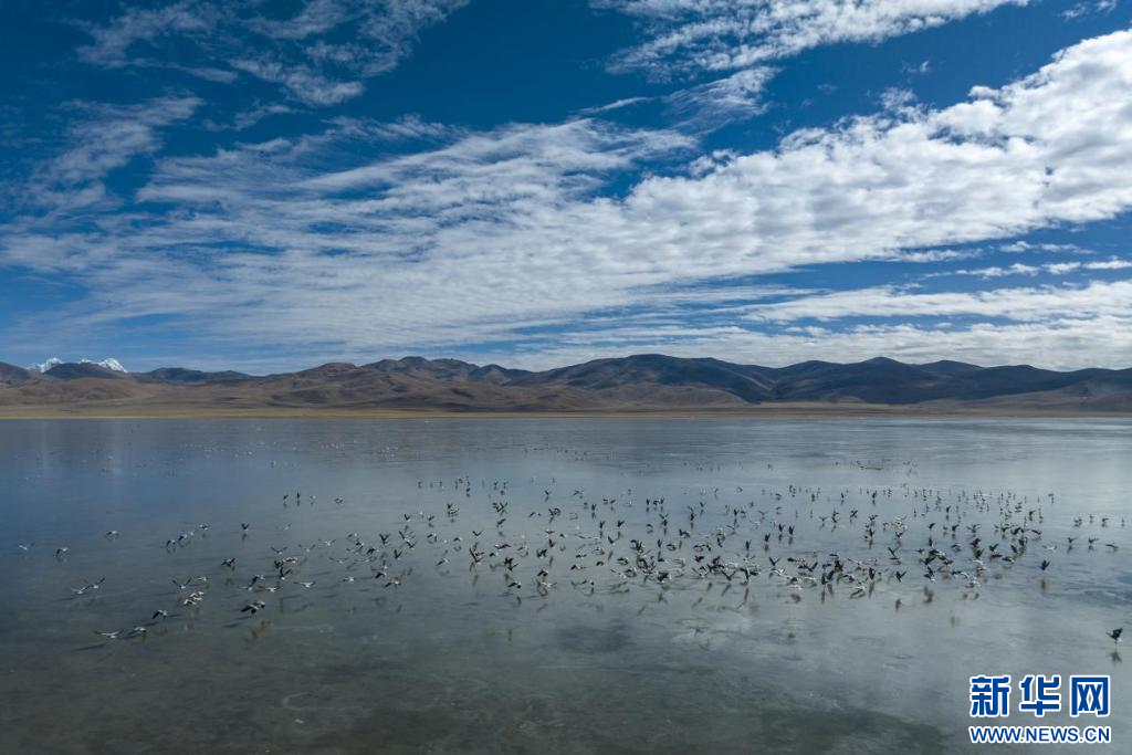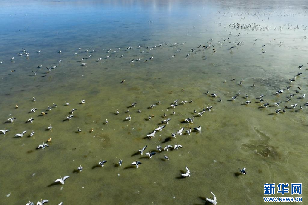 11月17日,在哲古湖拍攝的鳥(niǎo)群(無(wú)人機(jī)照片)。新華網(wǎng) 旦增努布 攝