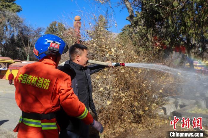 圖為拉薩森林消防在羅布林卡開展消防培訓。羅士鑫 攝