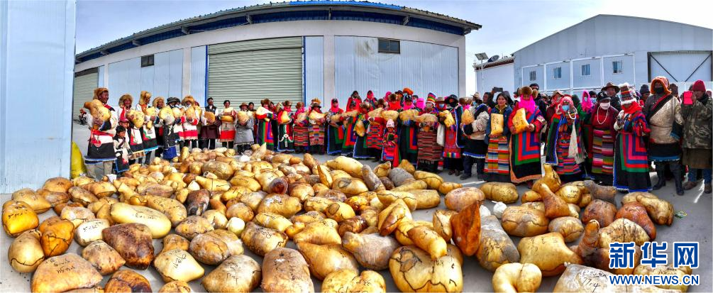 合作社為社員發(fā)放畜產(chǎn)品(11月28日攝)。新華社發(fā)(索朗仁青 攝)