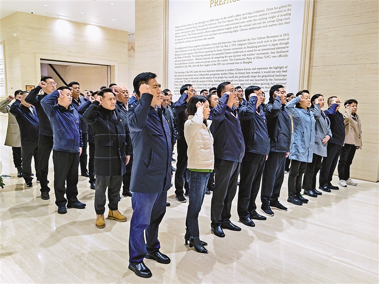圖為學(xué)員們在中共一大紀念館重溫入黨誓詞。徐晶 攝