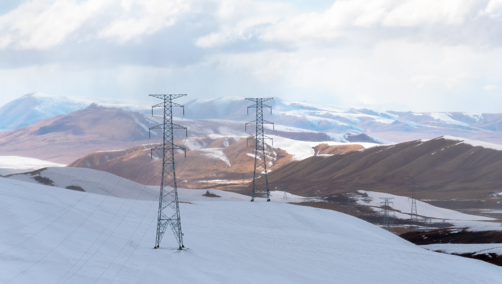 羌塘草原冰天雪地里的電網。(趙清鵬 攝)