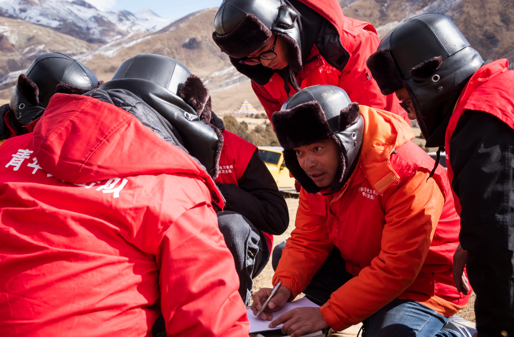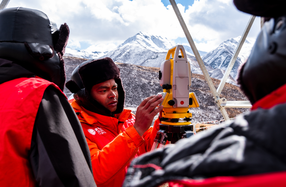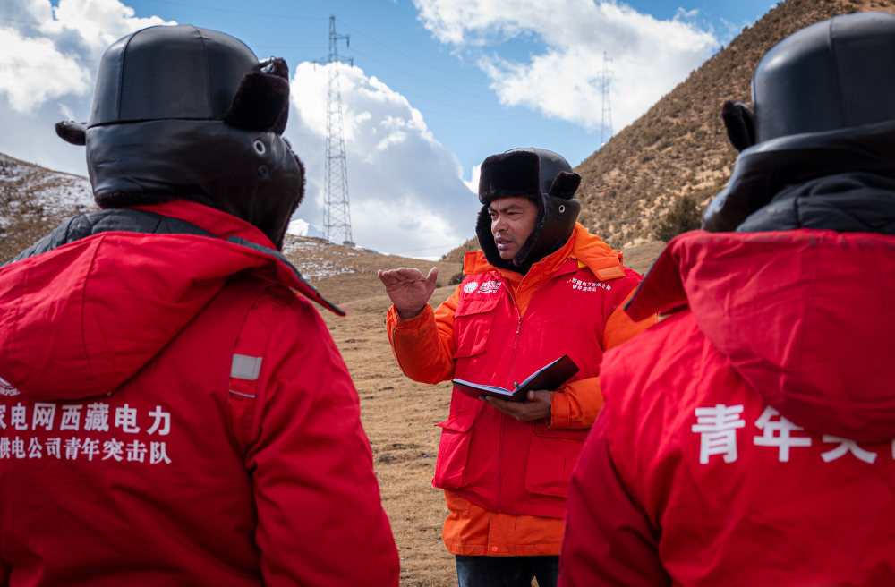 索縣榮布至丁青縣巴達35千伏線路工程負責人黃小洪在現(xiàn)場開展線路弧測量教學。(趙清鵬 攝)