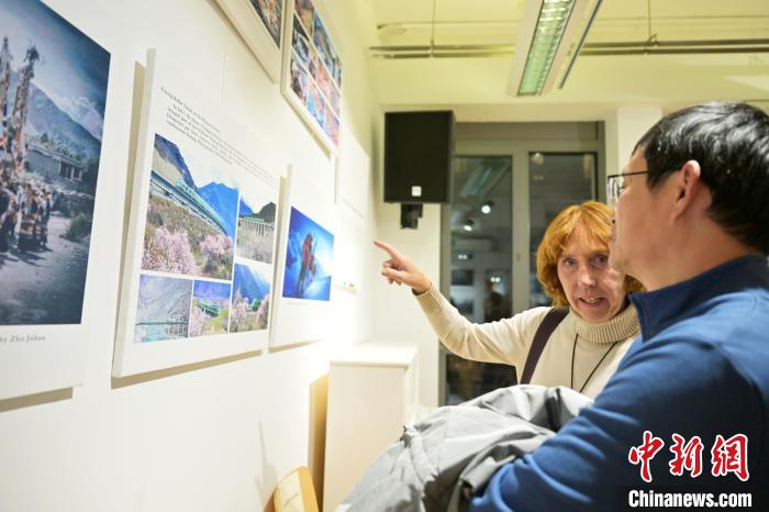 維也納商會(huì)市場(chǎng)部主席馬庫(kù)斯·漢茨(Markus Hanzl)參觀“和美西藏”攝影展。歐洲時(shí)報(bào)記者 周修怡 攝