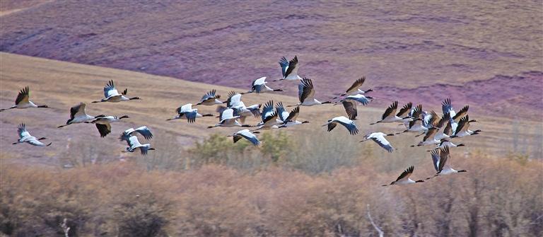 “生態(tài)好不好,看鳥就知道?!苯?,在西藏越冬的“老朋友”黑頸鶴越來越多。每年3月中旬,黑頸鶴會從越冬地——雅江中游河谷及其支流拉薩河、年楚河流域的“一江兩河”地區(qū),飛去羌塘北部草原等地繁育后代;10月中下旬又從繁殖地——那曲的班戈縣、申扎縣、嘉黎縣,阿里的日土縣、普蘭縣,日喀則的昂仁縣及拉薩的當(dāng)雄縣返回到越冬地。黑頸鶴的成群遷徙、停歇或繁殖,正是生態(tài)環(huán)境持續(xù)向好的“最美注腳”。