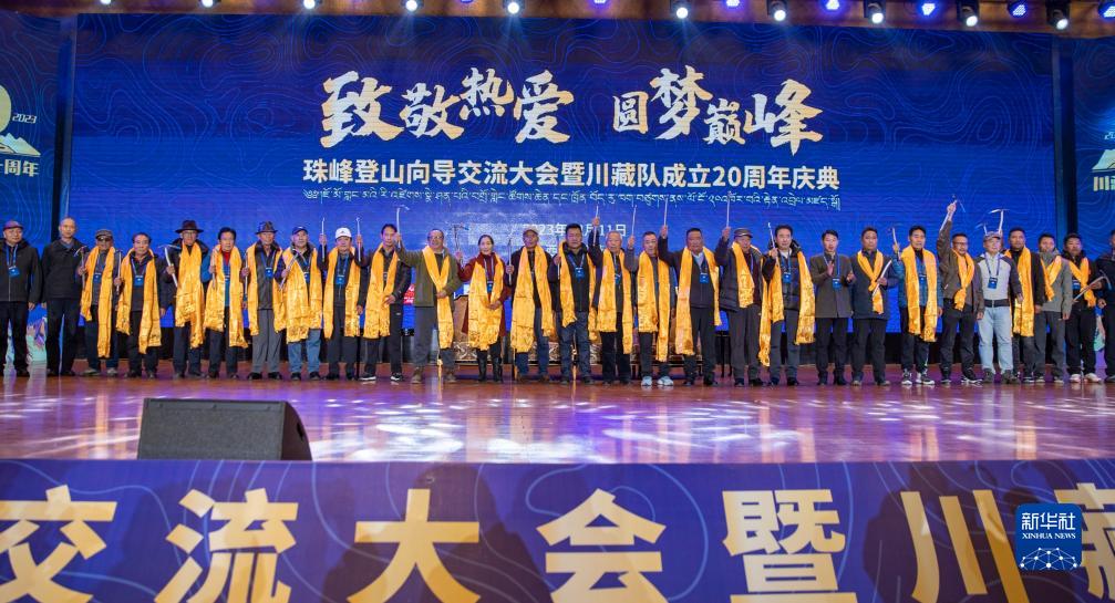 當(dāng)日,以“致敬熱愛 圓夢巔峰”為主題的珠峰登山向?qū)Ы涣鞔髸叽ú馗呱较驅(qū)f(xié)作隊(duì)成立20周年慶典在拉薩舉行。