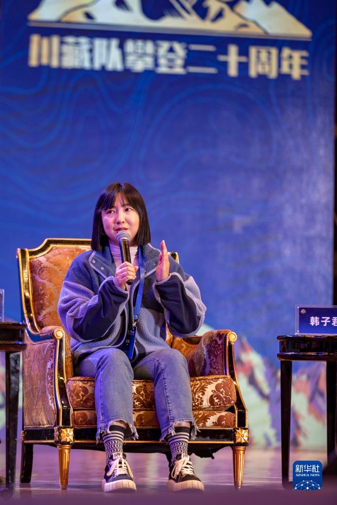 12月11日,第一位分別從南坡和北坡登上珠穆朗瑪峰的中國女性登山者韓子君在交流大會上分享自己的珠峰故事。新華社記者 黃耀漫 攝