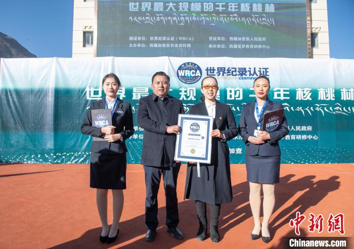 15日,經世界紀錄認證(WRCA)官方人員現(xiàn)場審核,西藏山南市加查縣被認證為“世界最大規(guī)模的千年核桃林”。
