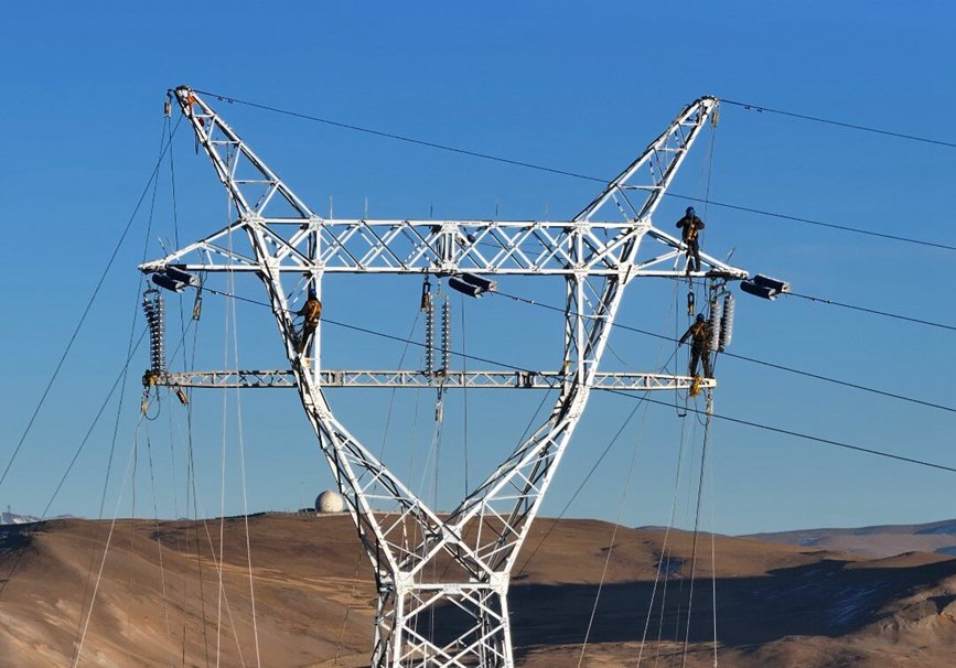 “還有10米,5米,導(dǎo)線到位!”12月12日,18時(shí),隨著對(duì)講機(jī)傳出的N5號(hào)塔位導(dǎo)線到位,標(biāo)志著海拔4600米的西藏自治區(qū)那曲市色尼區(qū)國(guó)能100兆瓦風(fēng)電110千伏送出工程全部貫通。