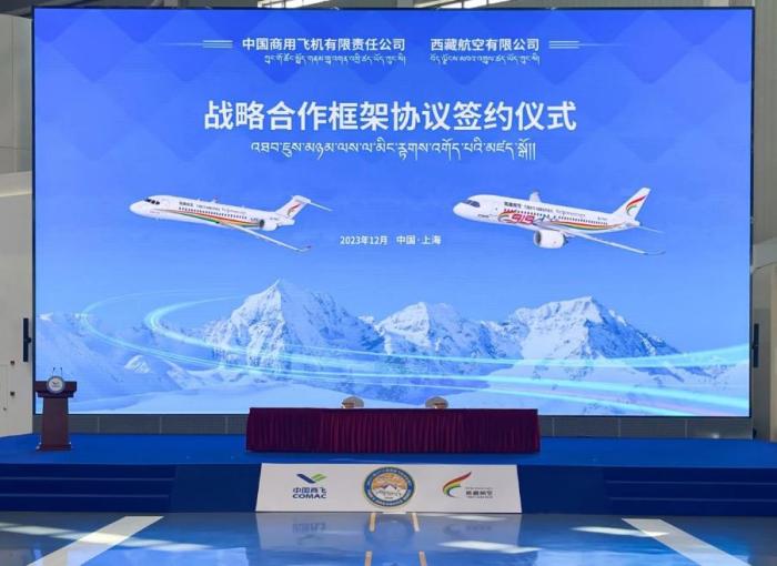 據(jù)“西藏航空”公眾號消息,12月17日,西藏航空與中國商飛公司簽署戰(zhàn)略合作框架協(xié)議,共同推進研制具有我國自主知識產(chǎn)權的國產(chǎn)大飛機高原機型。