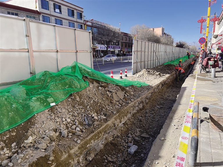 時值深冬,拉薩城中有一群人正如火如荼地忙碌著。12月18日,記者來到納金路,工人們正在進行路面燃?xì)夤艿栏脑?。挖掘的泥土被綠色網(wǎng)蓋住,并未四處飛揚,剛澆筑的混凝土都鋪上厚厚的棉被以達到養(yǎng)護效果。四川佳成建設(shè)有限公司負(fù)責(zé)此次路面項目,現(xiàn)場管理陳文韜告訴記者:“為了盡快完成工作,還市民一條通暢的道路,我們已經(jīng)將工人分為24小時3班制,在保證安全的前提下加快施工進度,預(yù)計在12月31日左右完成路面的工作?!标愇捻w還表示,路面大部分工程都是通過人工挖掘,噪音不大。如遇見需要使用機器的情況,也會在白天施工,晚上10點前必須停止,爭取做到不給居民的生活帶來困擾。