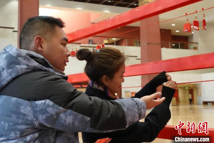 當(dāng)日上午,西藏博物館中央大廳聚集了許多參加現(xiàn)場活動(dòng)的游客。游客以隨機(jī)抽福袋、領(lǐng)獎(jiǎng)品的形式參與活動(dòng)。參與者紛紛表示在新年的第一天開展這樣的活動(dòng)很有意義。針對元旦期間來館參觀的游客,西藏博物館還制作有館藏文物元素的主題紀(jì)念賀卡供游客留念。