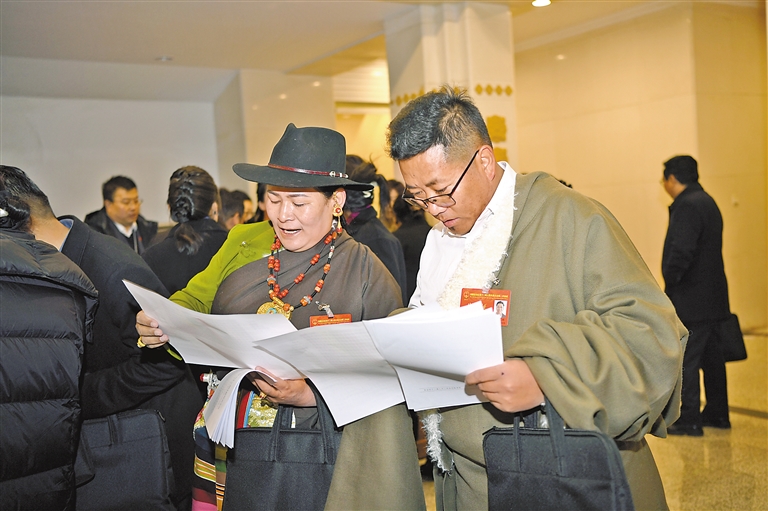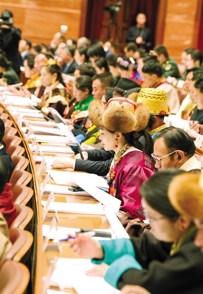 西藏自治區(qū)十二屆人大二次會(huì)議現(xiàn)場(chǎng)?!∮浾摺∨硕唷z