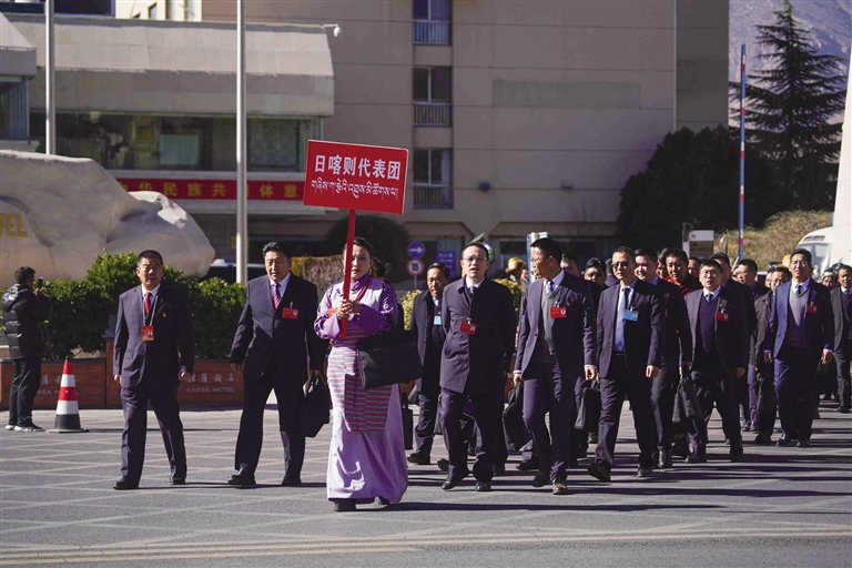 日喀則代表團步入閉幕會場。