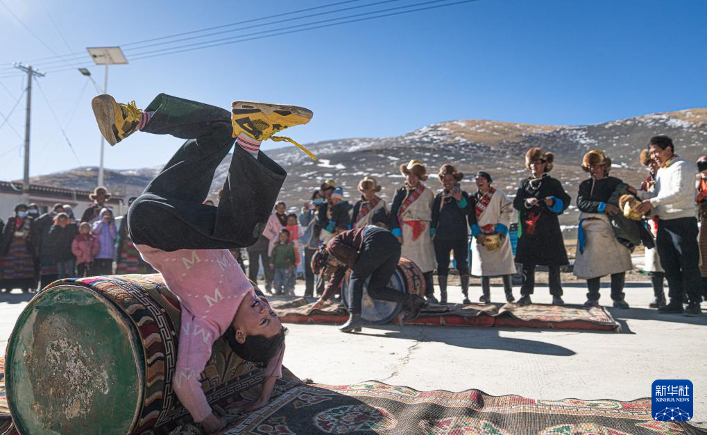 1月13日,時值西藏日喀則一帶傳統(tǒng)的農家新年大年初二。坐落于群山間的日喀則市白朗縣東喜鄉(xiāng)思古龍村,延續(xù)傳統(tǒng)習俗,舉行擠牛奶、擲牛角等傳統(tǒng)文體比賽和翻桶接力賽等娛樂活動,以此慶祝新年。