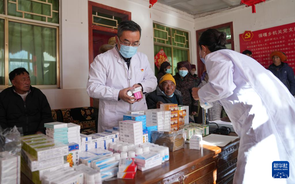 1月24日,西藏大學(xué)醫(yī)學(xué)院熊海教授給患者發(fā)放藥品。新華社記者 晉美多吉 攝