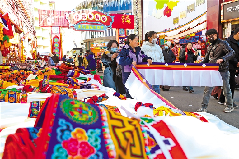 春節(jié)、藏歷新年臨近,年貨市場(chǎng)開始熱鬧起來。山南市澤當(dāng)鎮(zhèn)市民紛紛走進(jìn)大型商超和農(nóng)貿(mào)市場(chǎng)選購節(jié)日貨品,商戶備足貨源,推出讓利促銷活動(dòng),滿足各族群眾消費(fèi)需求,年貨市場(chǎng)呈現(xiàn)出購銷兩旺的良好態(tài)勢(shì)。